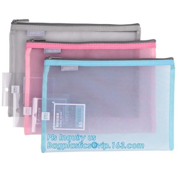 promotion pvc binder file A4 mesh zipper waterproof bag from professional manufacturer, A4 A5 clear nylon mesh file fold Images |